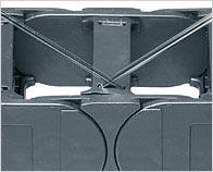 The modular structure of the guide trough enables the linking of a variety of radii of chains, circles and bends with always the same trough parts.